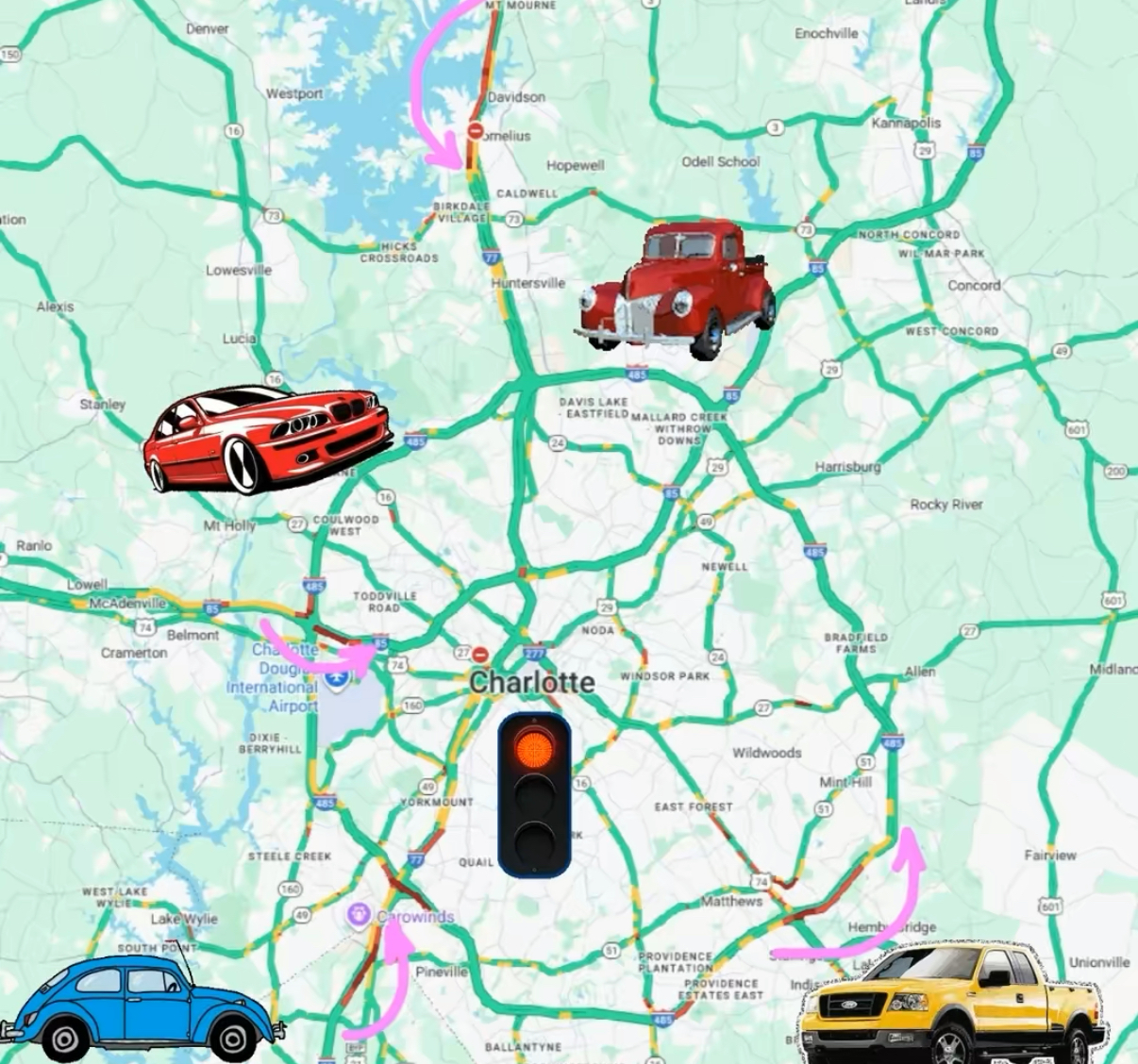 Charlotte NC drive / commute around the city